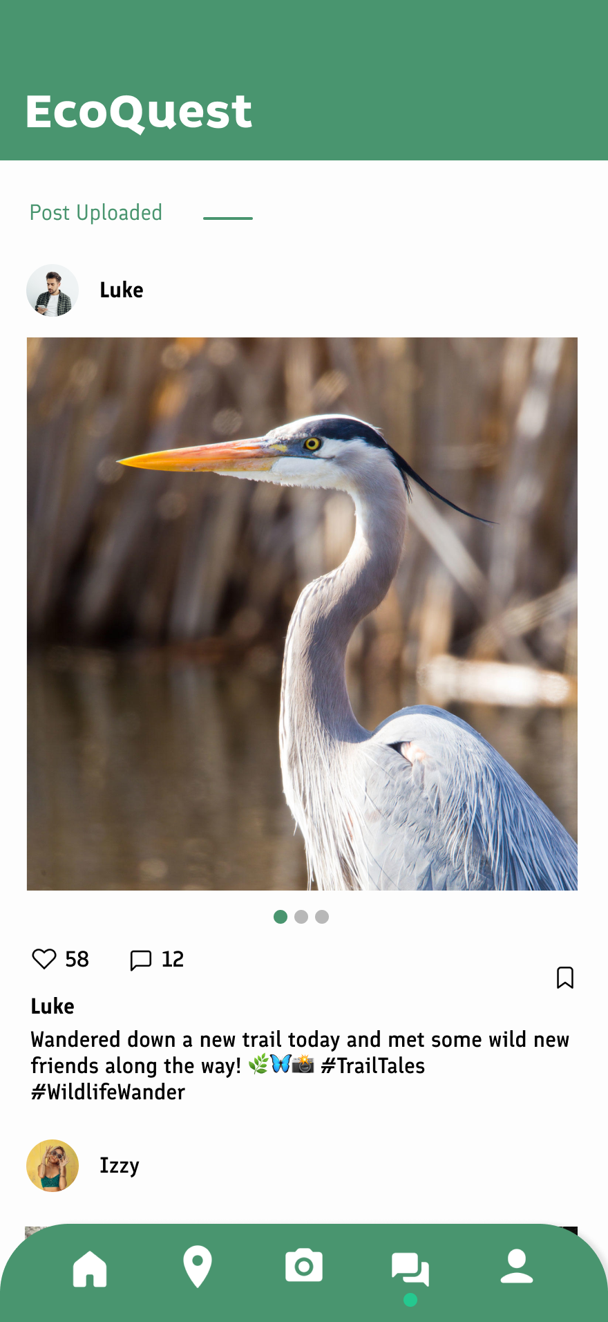 By tapping the plus sign, Liam is able to create a new post of the wildlife and scenic views he discovers along the way.