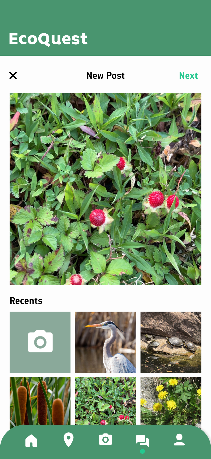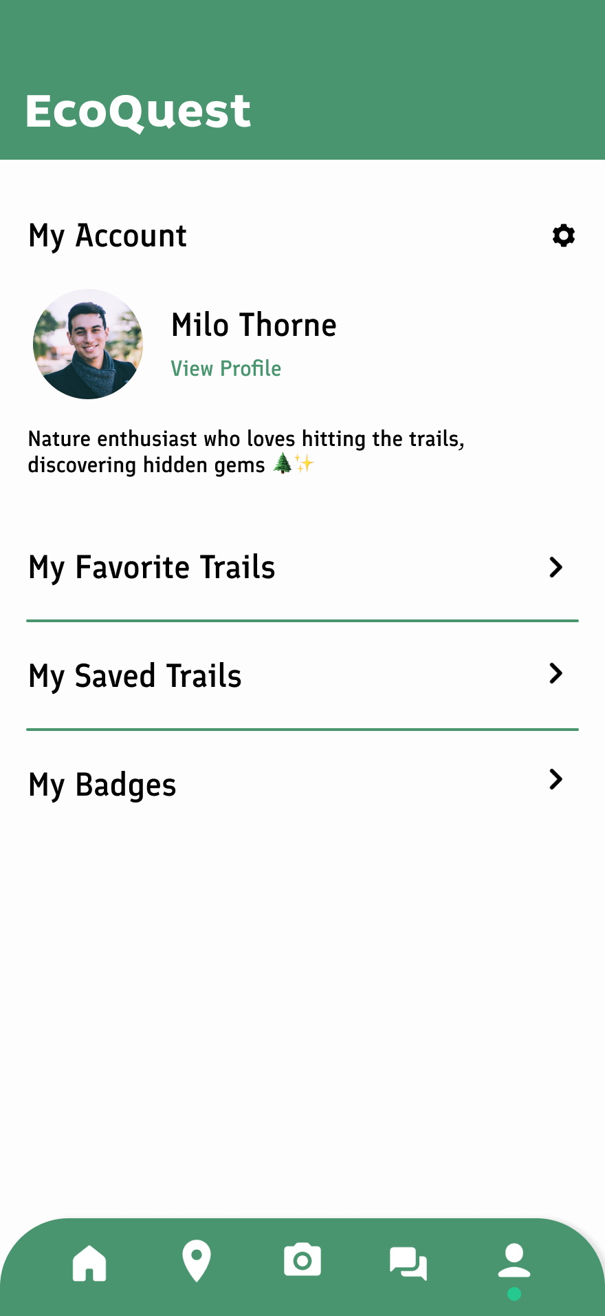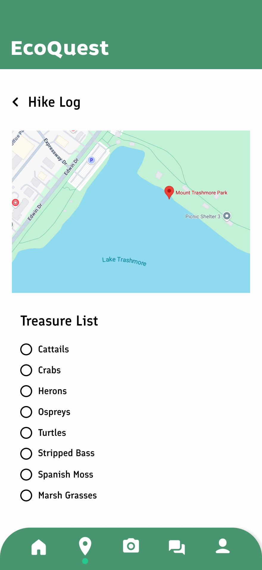 EcoQuest is a nature exploration app designed to inspire people of all ages to get outside, explore parks and hiking trails, and reconnect with the natural world through social interaction. Users can collect wildlife and plants by identifying them with their phone, earning rewards along the way. The more you explore, the more you discover—making nature walks exciting and educational!