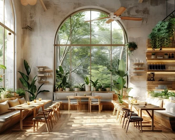 By incorporating natural elements, organic textures, and earthy tones, the design fosters a welcoming and calming environment. The elements of nature-inspired design focuses on a space that embraces an open atmosphere with soft hues of browns and greens.